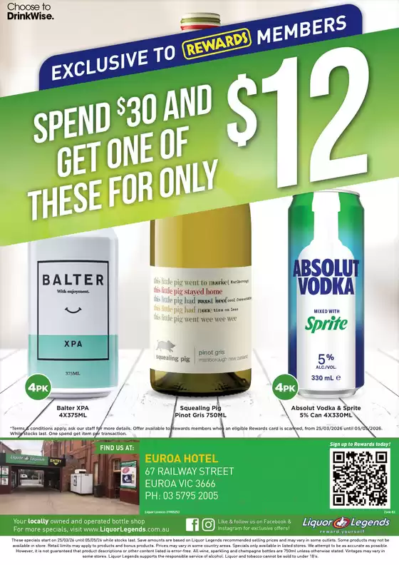 On Tiendeo, we provide you with all the updated information about Liquor Legends, such as opening hours, exclusive offers, and the exact location of the store at 70 John St. Additionally, you will have access to the latest catalogues from Liquor Legends, where you can discover the most recent promotions and take advantage of great discounts on Liquor products for your purchases in Coonabarabran NSW.