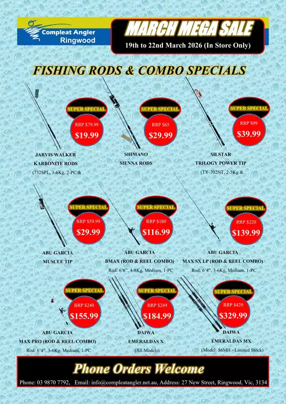 Don't miss the chance to visit the Compleat Angler store at 11 Boneo Rd for a complete shopping experience. We invite you to explore the promotions we have for you this March and stay informed about the best offers from Compleat Angler in Rosebud VIC. Visit us and start saving today!