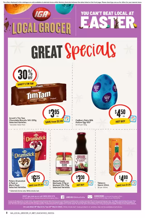 Don't miss the chance to visit the IGA store at 92 Railway Rd for a complete shopping experience. We invite you to explore the promotions we have for you this March and stay informed about the best offers from IGA in Three Springs WA. Visit us and start saving today!