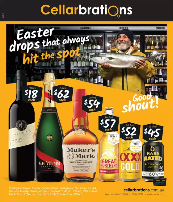 Don't miss the chance to visit the Cellarbrations store at 4/10 Creek St for a complete shopping experience. We invite you to explore the promotions we have for you this March and stay informed about the best offers from Cellarbrations in Walkerston QLD. Visit us and start saving today!